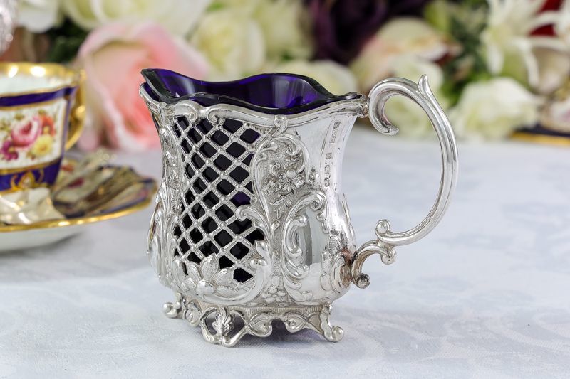 純銀製(925)1901年 ロココスタイル 透かし細工 バチェラーサイズ シュガーボウル & クリームジャグ