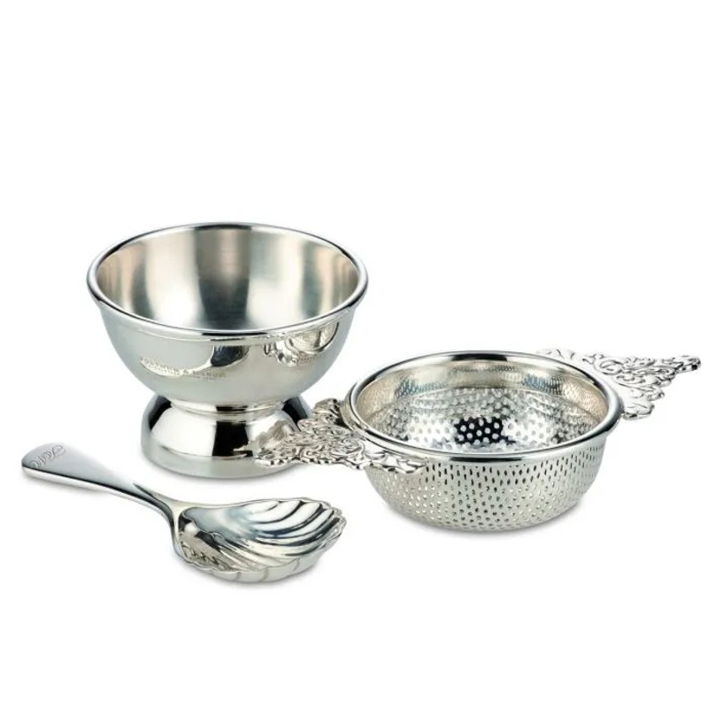 日本未発売 シルバープレート製 フォートナム&メイソン ティーストレイナー&ティーキャディースプーンセット [FM1]