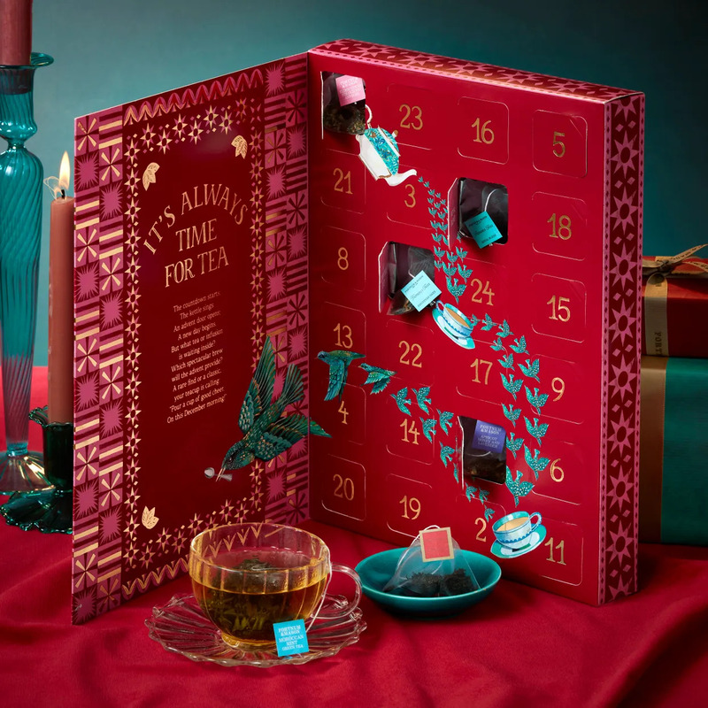 このアドベントカレンダーはフォートナムのコレクションから厳選されたお茶のティーバッグが毎日ひとつづつ出てくる仕組みです。24種類あります。